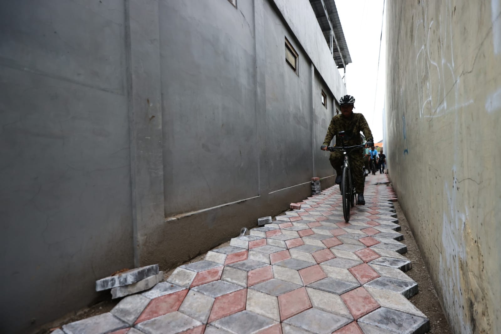 Sembari Bersepeda, Wali Kota Cek Pavingisasi dan Resmikan Fasum