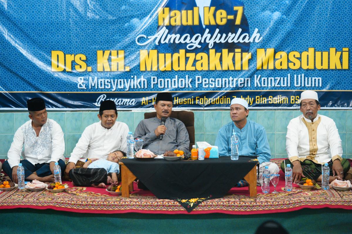 MADIUN - Wali Kota Madiun, Dr. Maidi turut menghadiri peringatan Haul ke-7 Muassis Al Maghfurlah Pondok Pesantren Kanzul Ulum, Drs. KH. Mudzakkir Masduki.