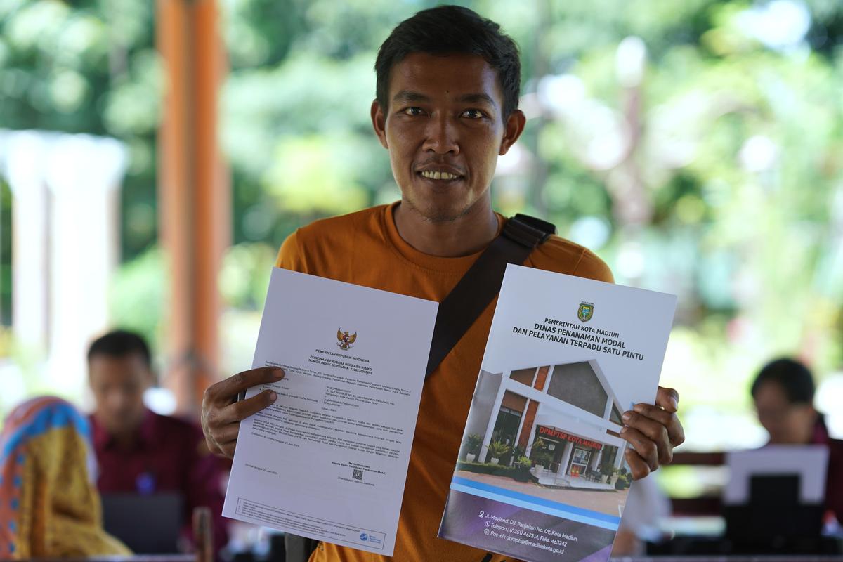 MADIUN - Laura JOSS, yang merupakan akronim dari Lapak UMKM-Kelurahan Jemput OSS terbukti memudahkan pelaku usaha dalam memperoleh nomor induk berusaha (NIB). Berdasarkan data dari Dinas Penanaman Modal dan Pelayanan Terpadu Satu Pintu (DPMPTSP) Kota Madiun, tercatat sudah menghasilkan 9.139 perizinan berusaha dari target awal 4.000 di tahun 2023.