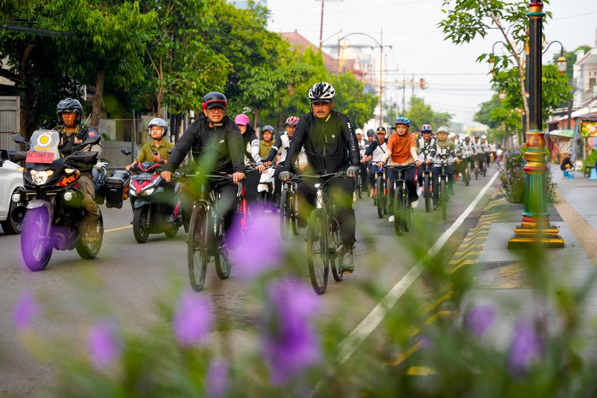 ‘’Kita bersepeda untuk olahraga biar sehat. tetapi tidak hanya itu, kita juga melihat pekerjaan secara langsung. Kalau ada yang kurang langsung kita beri arahan di situ,’’ kata wali kota.