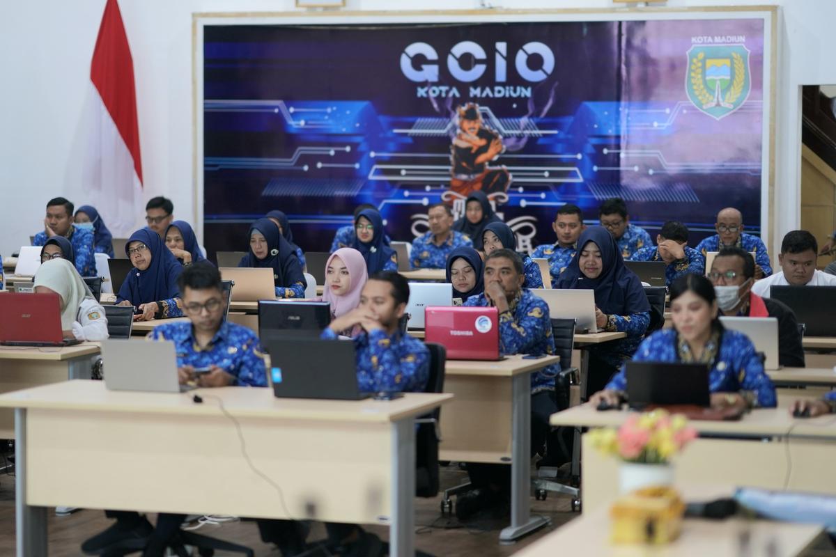 MADIUN – Sistem Pemerintahan Berbasis Elektronik (SPBE) Kota Madiun untuk 2023 cukup baik. Hal itu dibuktikan dengan diraihnya hasil evaluasi SPBE Kota Madiun dari Kementerian Pendayagunaan Aparatur Negara dan Reformasi Birokrasi (KemenPAN-RB) beberapa waktu lalu. Indeks SPBE Kota Madiun di angka 4,45 poin dengan predikat memuaskan. Itu menempatkan Kota Madiun di peringkat tertinggi ketiga nasional kategori kota/kabupaten bagian barat.