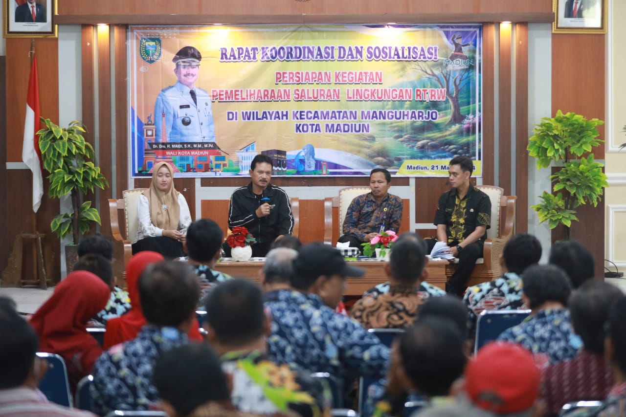 MADIUN – Keberadaan saluran penting adanya. Karenanya, saluran wajib baik. Di Kota Madiun, saluran mendapatkan perhatian tersendiri dari Wali Kota Madiun, Dr. Maidi. Rapat koordinasi pun digelar. Seperti yang berlangsung di aula Kecamatan Manguharjo, Kamis (21/3) sore. Rakor tersebut sekaligus sosialisasi persiapan kegiatan pemeliharaan saluran lingkungan RT/RW.
