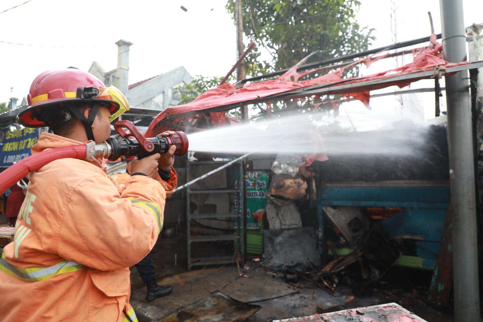 Melihat peristiwa itu, warga sempat berupaya memadamkan api dengan alat seadanya. Namun, kobaran si jago merah itu baru bisa dipadamkan seutuhnya setelah petugas datang dengan tiga unit mobil damkar.