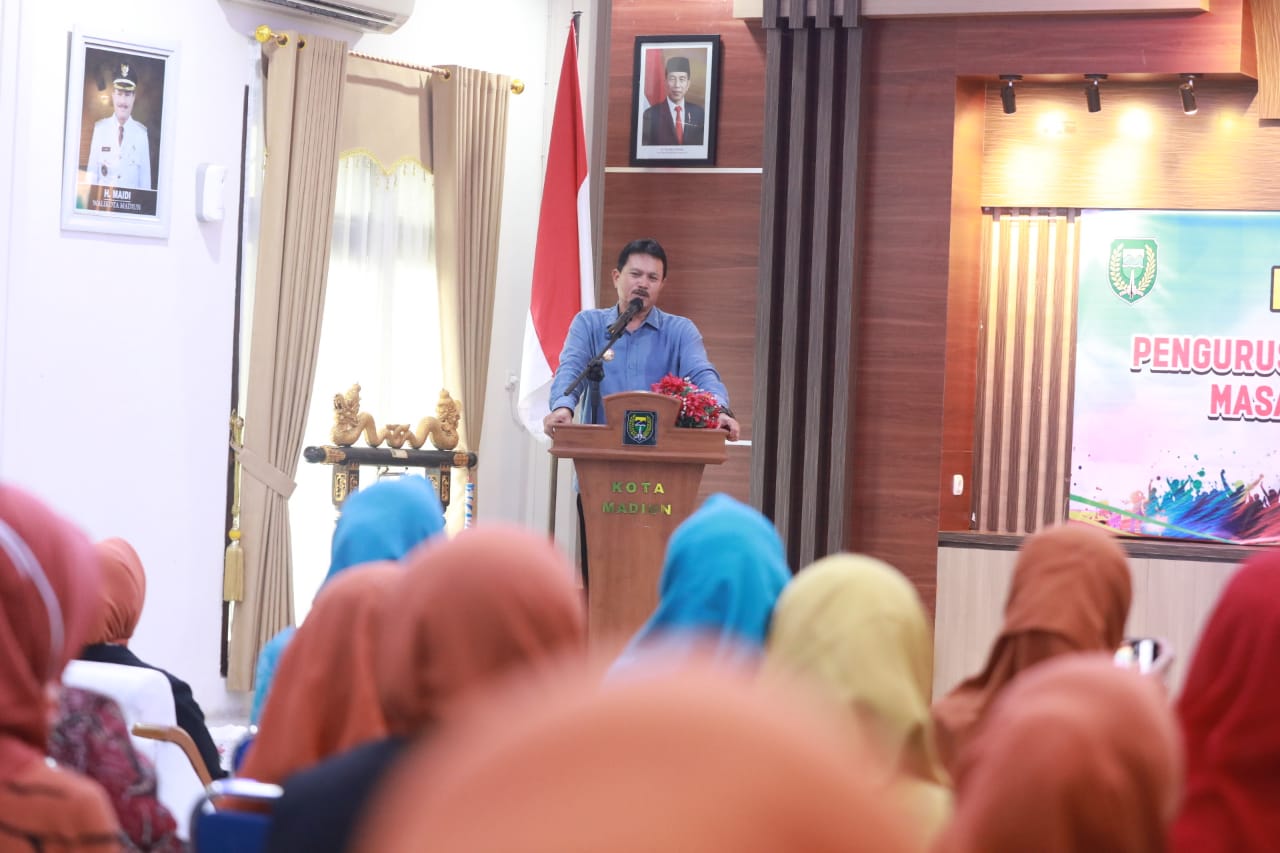 MADIUN - Wali Kota Madiun, Dr. Maidi melantik kepengurusan Persatuan Wanita Olahraga Seluruh Indonesia (Perwosi) Kota Madiun masa bakti 2023-2027, Selasa (26/3).