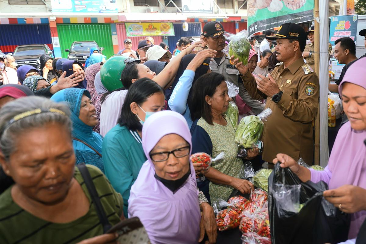 MADIUN – Kehadiran Wali Kota Madiun Dr. Maidi dalam pembukaan Gerakan Pangan Murah Serentak di halaman Stadion Wilis menjadi berkah tersendiri bagi masyarakat. Bagaimana tidak, orang nomor satu di Kota Pendekar itu tidak sekedar meninjau adanya pasar murah Pemerintah Provinsi Jawa Timur tersebut. Namun, juga memborong sejumlah komoditas yang dijual untuk kemudian dibagikan kepada masyarakat. Tak hanya itu, wali kota juga membagikan susu kepada anak-anak di bawah usia lima tahun yang turut hadir di lokasi.