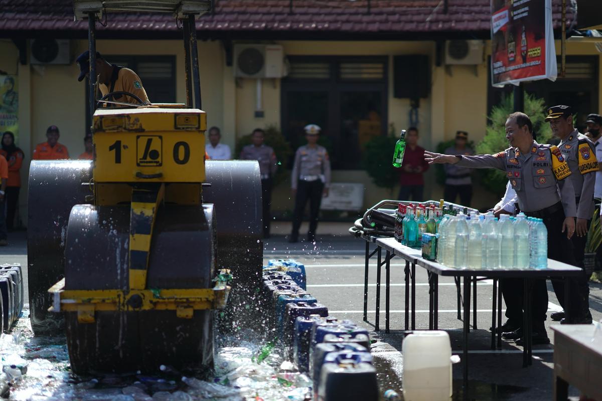 Jaga Kondusifitas Lebaran, Polisi Musnahkan BB Miras, Sabu Hingga Knalpot Brong Hasil Operasi Pekat