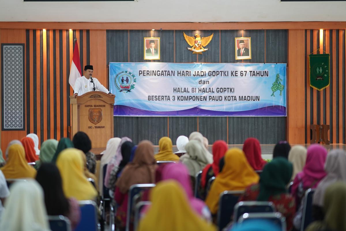 MADIUN - Halal Bihalal bakal jadi agenda rutin dalam minggu pertama masuk setelah lebaran. Wali Kota Madiun, Dr. Maidi menghadiri peringatan hari jadi GOPTKI ke 67 dan halal bihalal tiga komponen PAUD di Kota Madiun, Selasa (16/4).