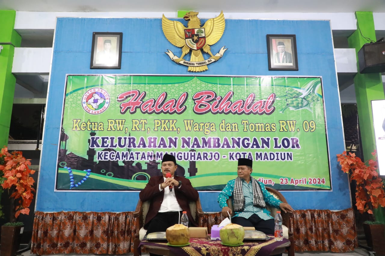 MADIUN – Giat silahturahmi dan halal bihalal bersama Wali Kota Madiun, Dr. Maidi terus berlanjut. Kali ini kegiatan berlangsung di lingkungan RW 09 Kelurahan Nambangan Lor, Selasa (23/4) malam. Kegiatan yang berlangsung di Kantor Kelurahan Nambangan Lor tersebut juga menjadi sarana sosialisasi dan serap aspirasi masyarakat.