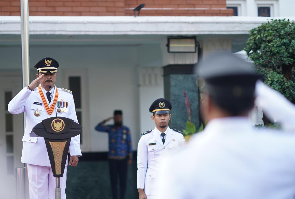 MADIUN – Upacara Peringatan Hari Otonomi Daerah (Otoda) ke-28 juga digelar di Kota Madiun, Kamis (25/4). Upacara berlangsung khidmat di halaman Balai Kota Madiun dengan Wali Kota Dr. Maidi bertindak sebagai inspektur upacara.
