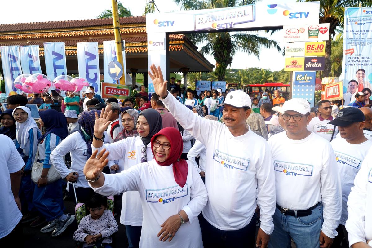 MADIUN - Event Karnaval SCTV di Kota Madiun memasuki hari kedua pada Minggu (28/2). Acara itupu diawali dengan kegiatan jalan sehat yang diberangkatkan oleh Wali Kota Madiun Dr. Maidi dari Alun-alun Kota Madiun.