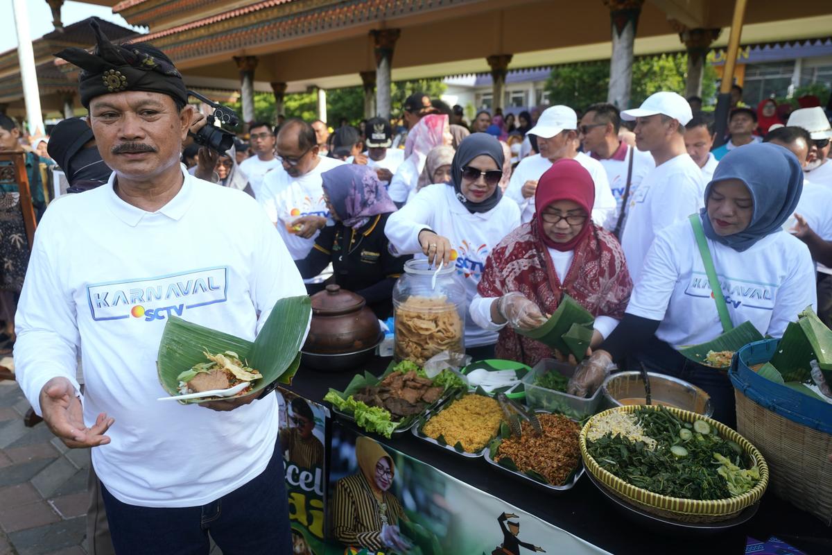 MADIUN - Kota Madiun memiliki makanan khas yang tentunya menggugah selera. Apalagi kalau bukan Nasi Pecel dan Tape Kambang. Dua kuliner istimewa itupun tersaji di 'Warung Pecel Bu Maidi' dalam rangkaian event Karnaval SCTV di Alun-alun Kota Madiun, Minggu (28/4).