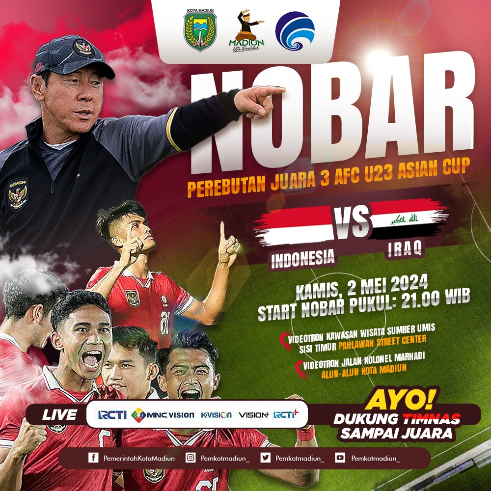 Pemkot Madiun Gelar Nobar Timnas Lagi Malam Nanti, Yuks Siapkan Teriakanmu, Dukung Timnasmu