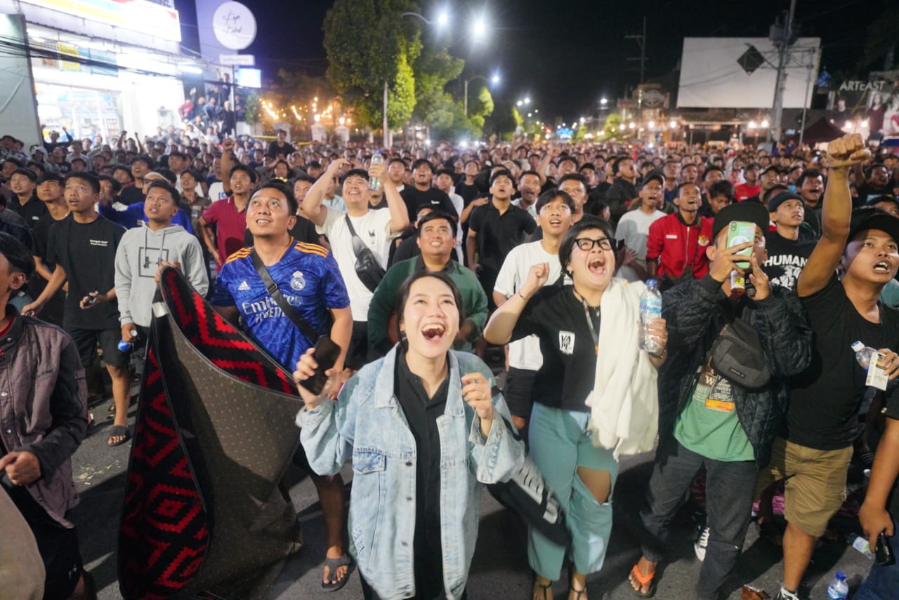 Timnas Indonesia kembali menelan kekalahan dalam ajang Piala Asia U-23. Nathan Tjoe-A-On dkk harus mengakui keunggulan Timnas Iraq U-23 dengan skor 1-2 dalam perebutan tempat ketiga Piala Asia U-23. Kekalahan itu sekaligus memupuskan langkah Timnas Indonesia untuk lolos langsung ke Olimpiade Paris, Perancis untuk cabor sepak bola. Biarpun begitu, dukungan untuk Garuda Muda tak pernah padam dari Kota Pendekar. Salah satunya terlihat dalam momentum nonton bareng (nobar) yang digelar Pemerintah Kota Madiun di Pahlawan Street Center (PSC) dan Alun-alun Kota Madiun, Kamis (2/5) malam. Moment-moment dukungan masyarakat untuk Timnas Indonesia tersebut tentu sayang untuk dilewatkan. Maju terus Timnas Indonesia, kita dukung sampai juaraaaaa. (rams/ney/wshendro/agi/madiuntoday)