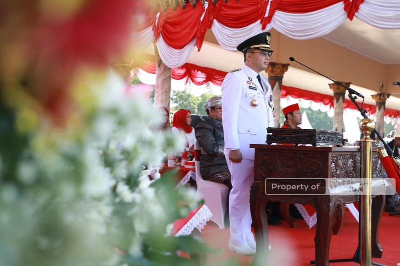 Pj. Wali Kota Madiun Eddy Supriyanto yang hadir sebagai inspektur upacara mengajak seluruh masyarakat agar menjadikan momen peringatan kemerdekaan untuk meningkatkan semangat memajukan Negara Indonesia.