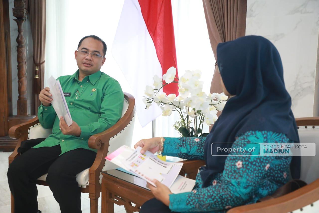 MADIUN - Pj. Wali Kota Madiun Eddy Supriyanto menerima audiensi dari Palang Merah Indonesia (PMI) Kota Madiun di Rumah Dinas, Selasa (10/9). Pertemuan ini membahas persiapan upacara Hari PMI yang akan digelar dalam waktu dekat. Dalam audiensi tersebut, PMI Kota Madiun memaparkan berbagai agenda acara, termasuk pemberian penghargaan kepada pendonor yabg telah mendonorkan darahnya lebih dari 100 kali.