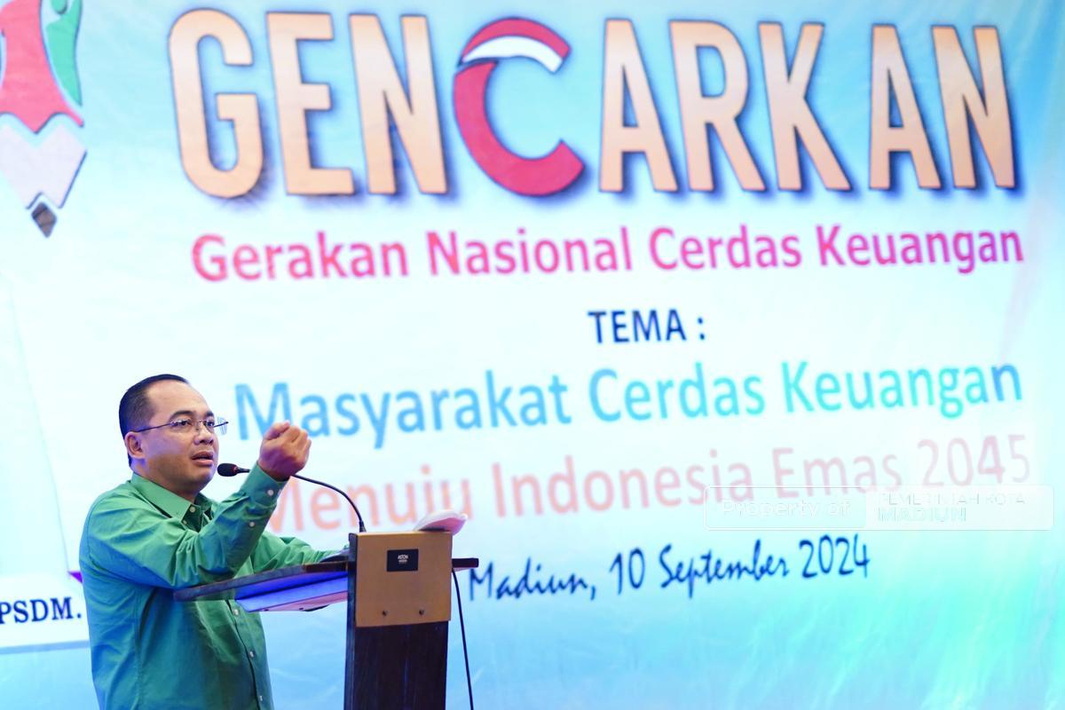 MADIUN - Pj. Wali Kota Madiun Eddy Supriyanto menghadiri acara bertajuk Peningkatan Literasi dan Inklusi Keuangan melalui Gerakan Nasional Cerdas Keuangan (GENCARKAN) yang digelar di Hotel Aston, Selasa (10/9) siang. Acara ini mengusung tema "Masyarakat Cerdas Keuangan Menuju Indonesia Emas 2045" dan dihadiri oleh Pimpinan OJK Kediri, Tim Percepatan Akses Keuangan Daerah (TPAKD) Kota Madiun, Jajaran Pemkot Madiun, serta berbagai stakeholder dan undangan lainnya.