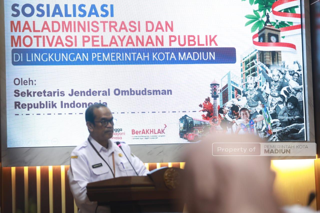 Sekretaris Jenderal Ombudsman Republik Indonesia Suganda Pandapotan Pasaribu hadir langsung memberikan sosialisasi dan motivasi. Didampingi Sekretaris Daerah Kota Madiun Soeko Dwi Handiarto dan Kepala Biro Administrasi Pengawasn Penyelenggaraan Pelayanan Publik Syahrul Bayan.