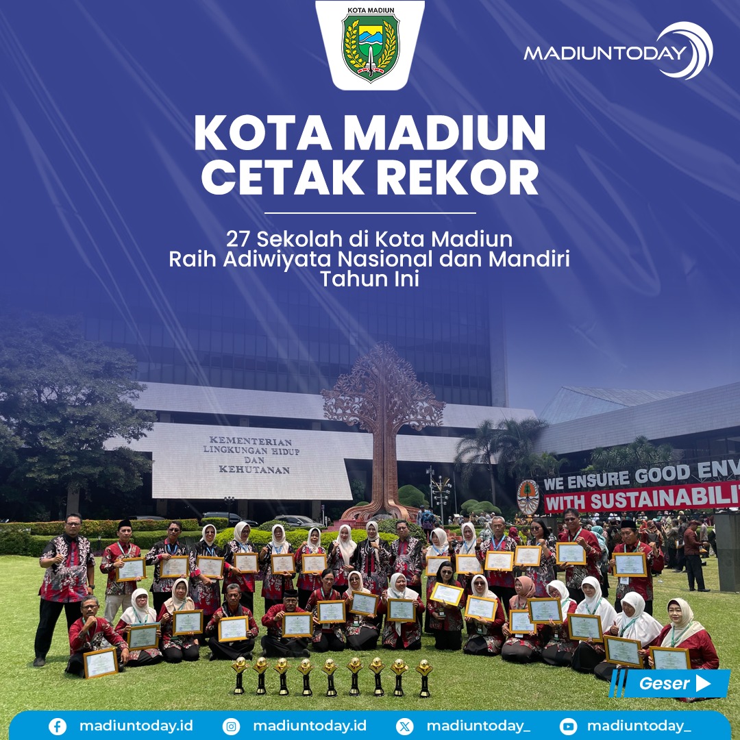 JAKARTA – Kota Madiun cetak rekor terkait urusan sekolah Adiwiyata tingkat nasional. Bagaimana tidak, ada sebanyak 27 sekolah di Kota Pendekar yang mendapatkan predikat sekolah Adiwiyata tingkat nasional dan Adiwiyata mandiri tahun ini. Penerimaan penghargaan berlangsung di Kementerian Lingkungan Hidup dan Kehutanan (LHK), Rabu (2/10).