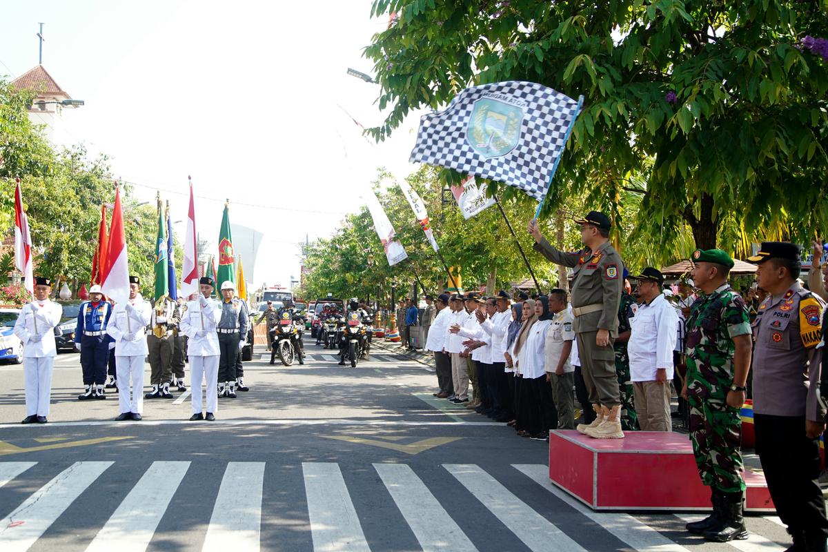 Pelepasan Pataka Jer Basuki Mawa Bewa Berlangsung Meriah di Kota Madiun, Ada Drumband Hingga Sambutan Pelajar dari Pinggir Jalan