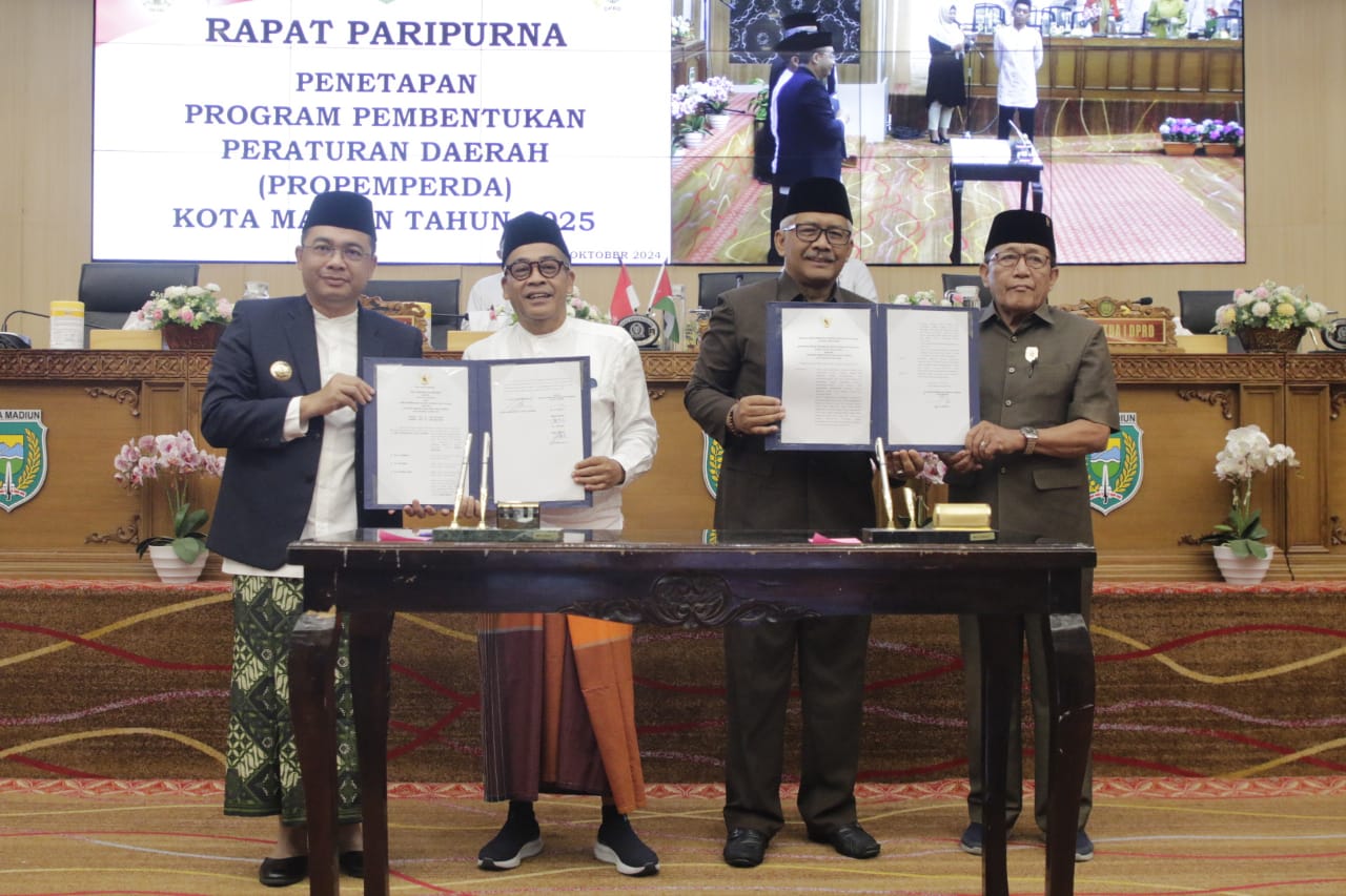 MADIUN – Instrumen perencanaan untuk menyusun peraturan daerah Kota Madiun berupa Program Pembentukan Peraturan Daerah (Propemperda) resmi ditetapkan. Pemkot Madiun dan DPRD Kota Madiun pun sepakat menargetkan tujuh raperda prioritas untuk diselesaikan selama satu tahun ke depan.