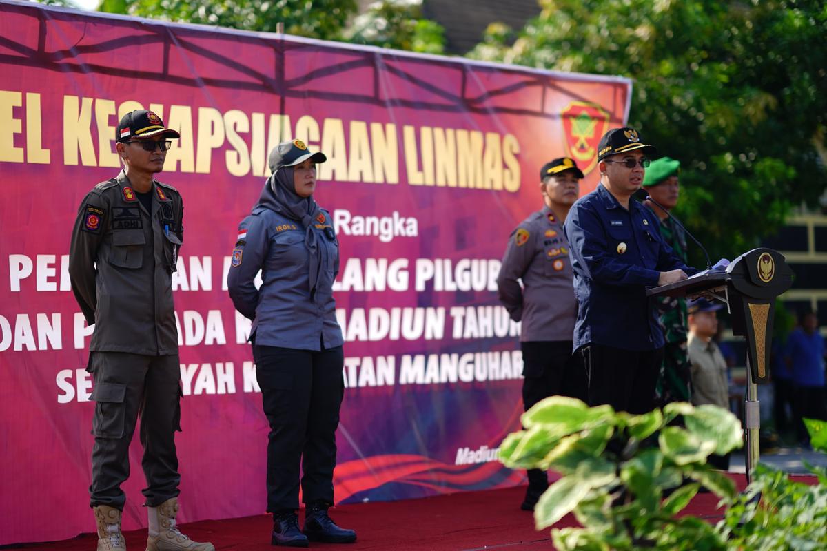 Tingkatkan Kesiapsiagaan Jelang Pilkada, Pemkot Gelar Apel Linmas se-Kecamatan Manguharjo
