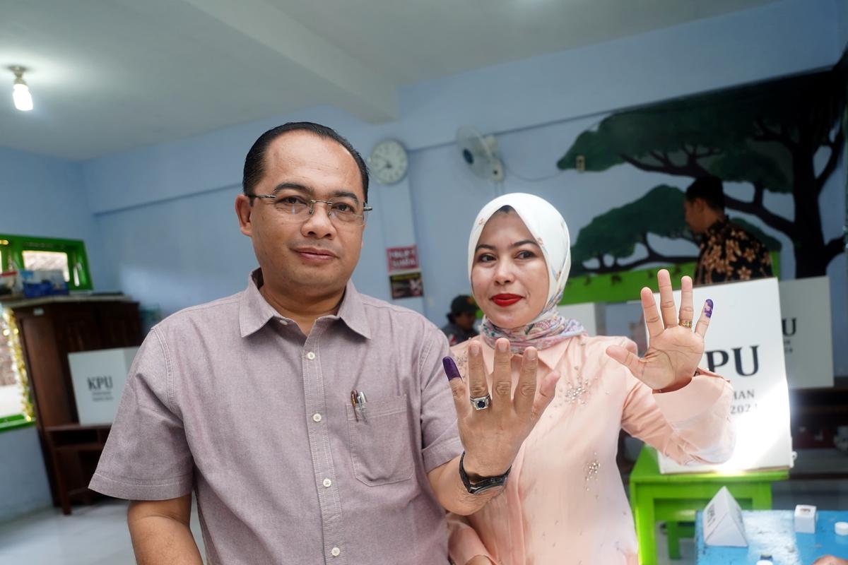 MADIUN - Pj Wali Kota Madiun, Eddy Supriyanto, hari ini menyalurkan hak pilihnya di TPS 003 yang terletak di Jalan Sulawesi, Kota Madiun, Rabu (27/11).
