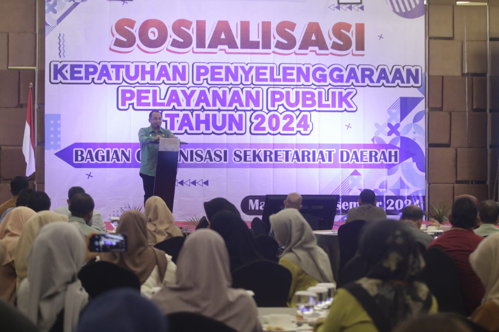 Untuk itu, Pemerintah Kota Madiun melalui Bagian Organisasi Setda Kota Madiun pun menggelar Sosialisasi Kepatuhan Penyelenggaraan Pelayanan Publik Tahun 2024. Bertempat di Bima Ballroom Aston Hotel Madiun, acara tersebut dibuka oleh Pj Wali Kota Madiun Eddy Supriyanto.