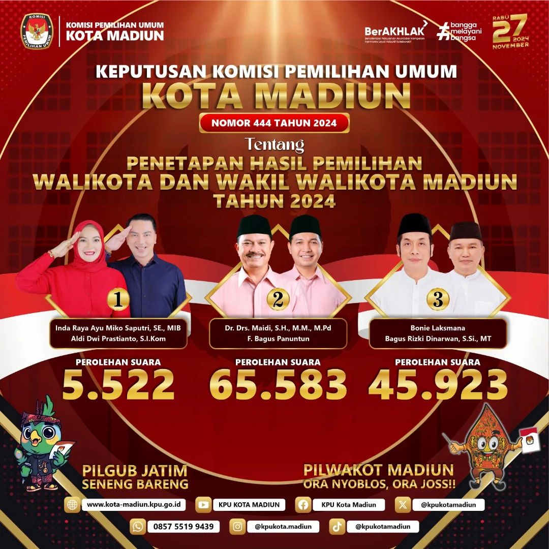 KPU Kota Madiun Tetapkan Hasil Perolehan Suara Pilkada 2024, Maidi-Panuntun Ungguli Dua Paslon Lain