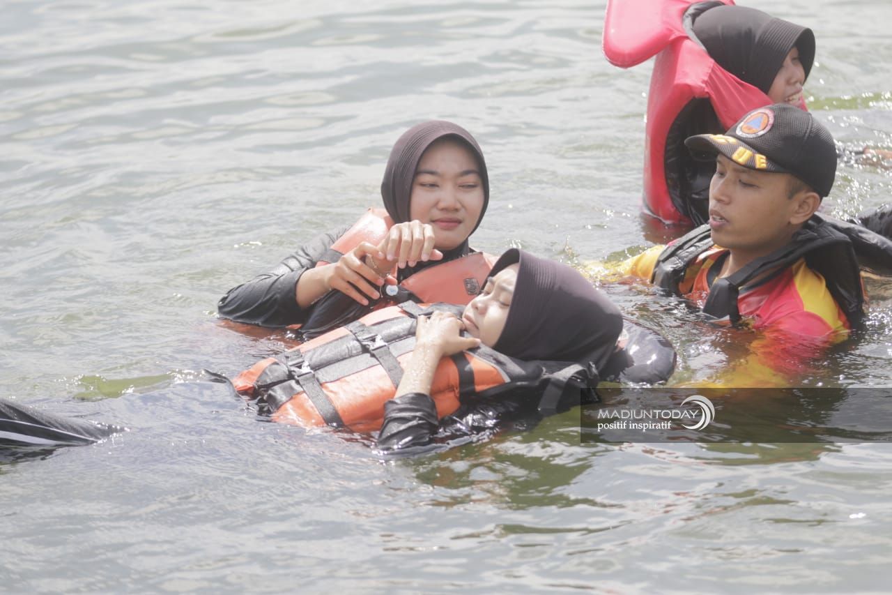 MADIUN - Badan Penanggulangan Bencana Daerah (BPBD) Kota Madiun, melaksanakan pelatihan kebencanaan berupa water rescue dan teknik pemadaman api kepada 150 mahasiswa STIKES BHM di Embung Pilangbango, Selasa (10/12).