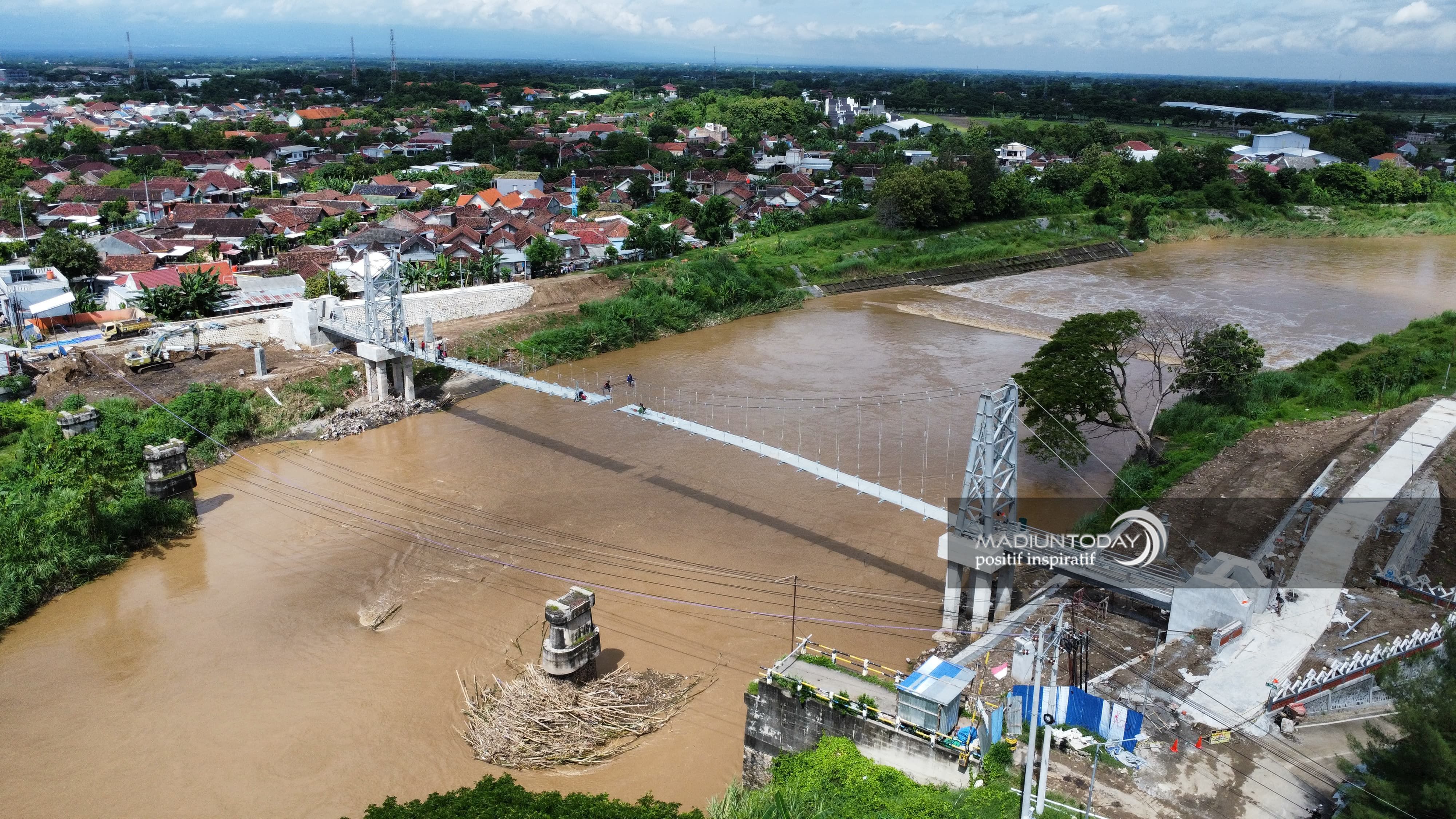 MADIUN – Jembatan Gantung Patihan tampaknya segera dapat difungsikan. Bagaimana tidak, pembangunan sudah nyaris rampung. Pembangunan tinggal menyisakan pekerjaan akhir. Salah satunya, pemasangan pagar pengaman di sisi kanan dan kiri. Jembatan yang menghubungkan Kelurahan Patihan dan Sogaten tersebut ditargetkan bisa difungsikan Januari 2025 mendatang.