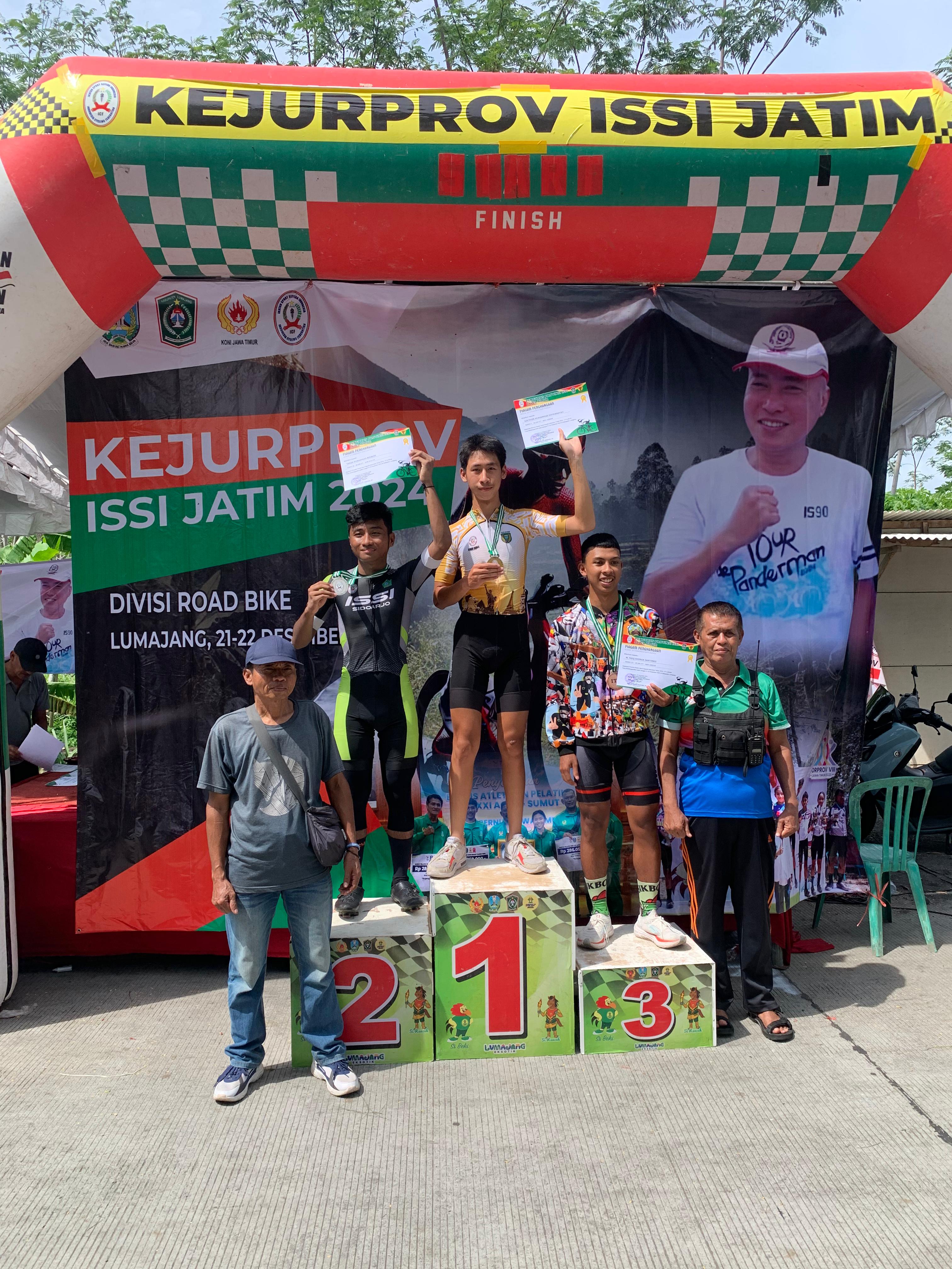 LUMAJANG – Sulthon Muhammad Ichwansyah kembali mengharumkan nama Kota Madiun di kancah olahraga bersepeda. Kali ini, atlet 16 tahun tersebut berhasil menyumbangkan dua medali di Kejuaraan Provinsi (Kejurprov) 2024 ini. Sulthon berhasil menyumbangkan medali emas untuk nomor Individual Time Trial (ITT) dan medali perak untuk nomor Individual Road Race (IRR).