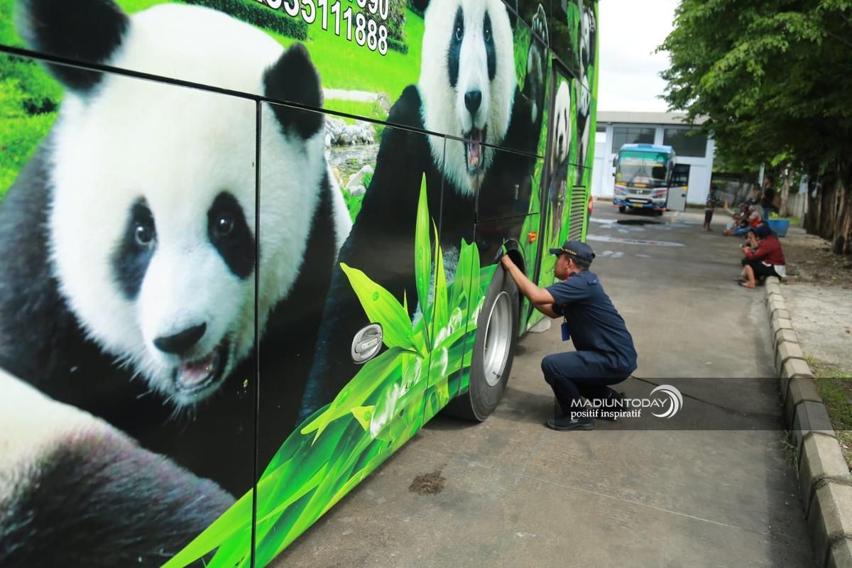 MADIUN - Sebagai upaya mendukung keamanan dan kenyamanan dalam masa angkutan Nataru 2024/2025, pengelola Terminal Purbaya Madiun menggelar ramp check secara rutin untuk bus yang masuk/keluar area terminal.