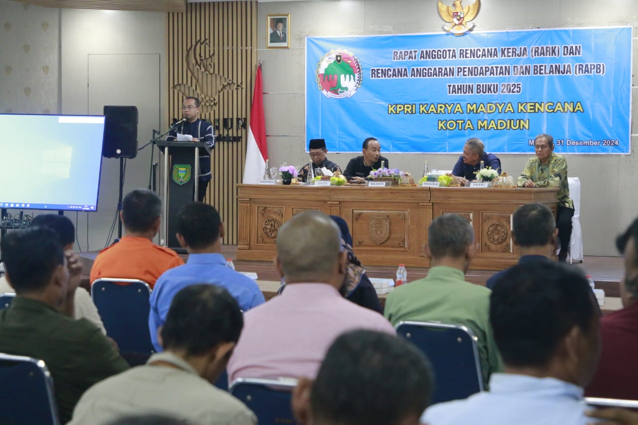 MADIUN – Rapat pembukaan Rencana Anggaran Rencana Kerja (RARK) dan Rencana Anggaran Pendapatan dan Belanja (RAPB) tahun buku 2025 Koperasi Pegawai Republik Indonesia (KPRI) Karya Madya Kencana berlangsung di Aula Kecamatan Kartoharjo, Selasa (31/12). Acara ini dihadiri oleh PJ. Wali Kota Madiun Eddy Supriyanto, bersama jajaran pengawas, pengurus, serta anggota koperasi.