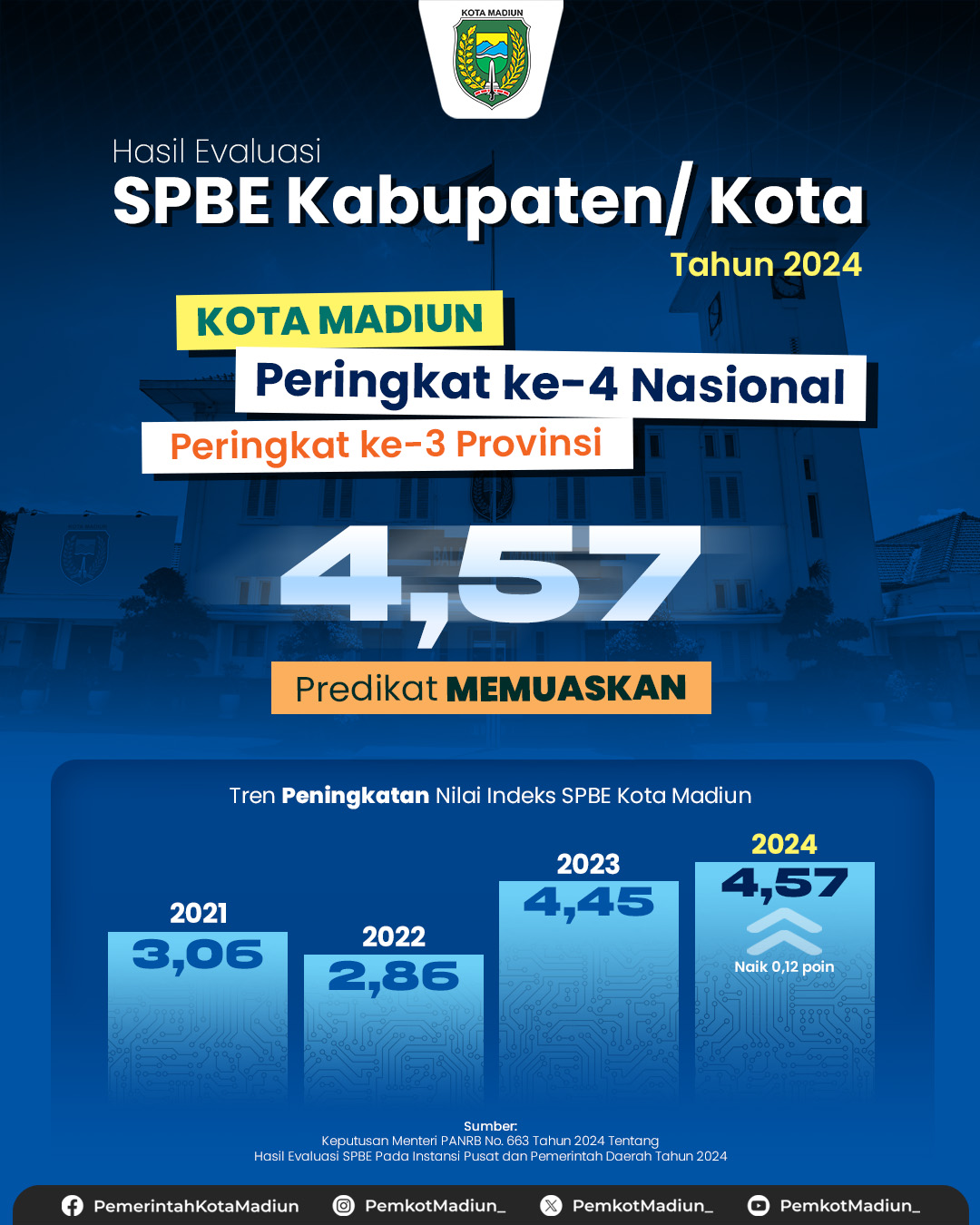 MADIUN – Mengawali awal tahun 2025, Pemerintah Kota Madiun mencatatkan prestasi membanggakan dalam penilaian Sistem Pemerintahan Berbasis Elektronik (SPBE).