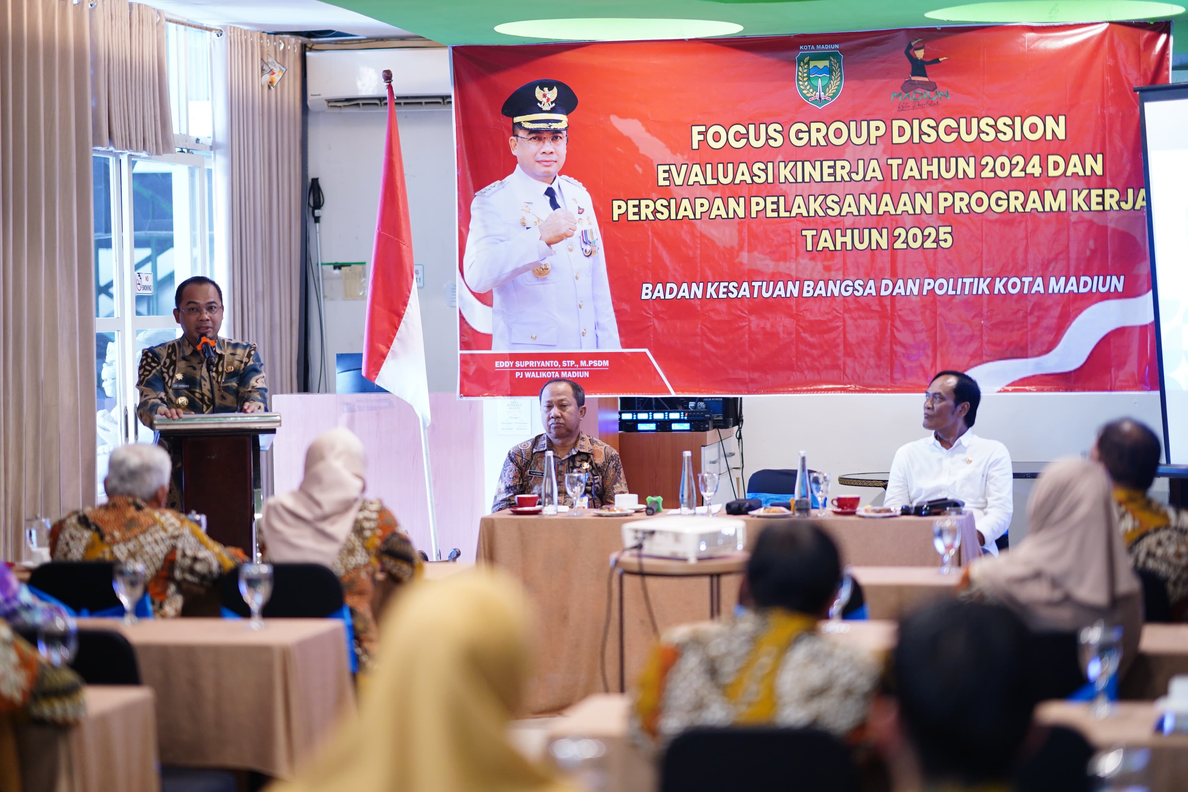MADIUN - Pj Wali Kota Madiun, Eddy Supriyanto, menghadiri acara Focus Group Discussion (FGD) yang digelar oleh Badan Kesatuan Bangsa dan Politik (Bakesbangpol) Kota Madiun.