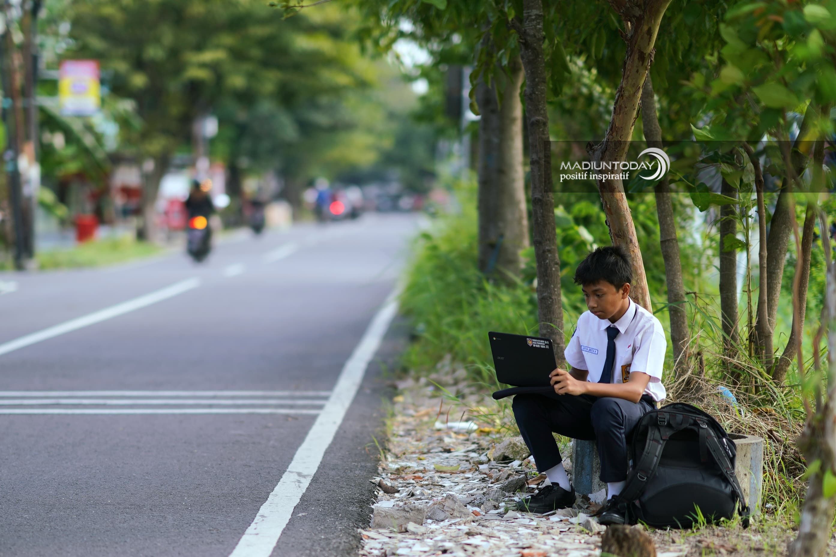 Belajar tidak harus di sekolah. Belajar bisa dimana saja. Seperti salah seorang pelajar ini. Sembari menunggu dijemput, dia terlihat asik dengan fasilitas laptop yang diberikan Pemerintah Kota Madiun. Sebab, di bagian laptop tersebut tertera stiker bertuliskan Pemerintah Kota Madiun-Dinas Pendidikan. Kejadian itu tertangkap kamera fotografer madiuntoday di Jalan Pelita Tama Kelurahan Rejomulyo, Selasa (5/2) sore. Pemerintah Kota Madiun memang memberikan fasilitas laptop dan chromebook dengan total hampir 14.825 unit pada 2020 dan 2023 lalu. Belasan ribu laptop itu saat ini sudah dimanfaatkan pelajar kelas 4 sampai 9 dan guru. Keberadaan laptop ini semakin lengkap dengan fasilitas internet gratis berupa wifi sebanyak tiga ribu lebih titik hingga saat ini. (dspp/agi/madiuntoday)