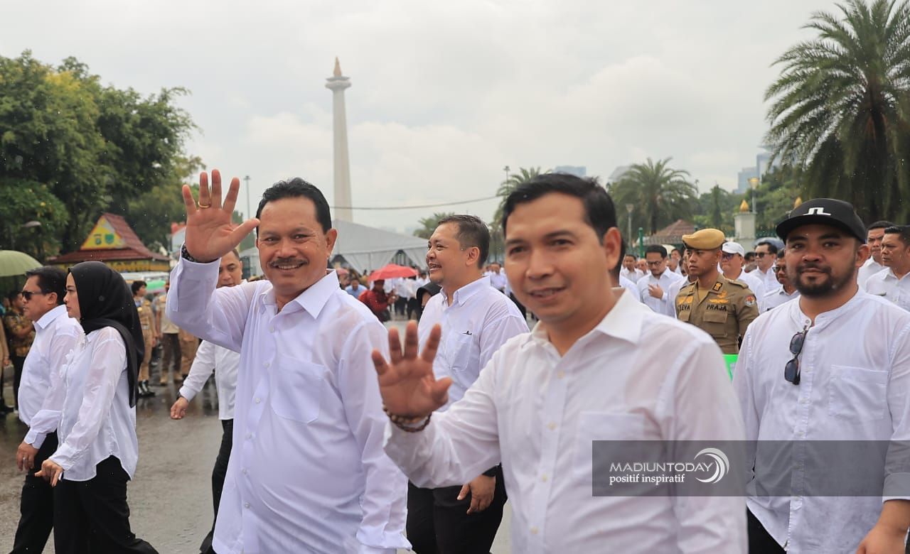 Untuk Dr. Maidi dan Bagus Panuntun tampak berada di barisan pleton 22. Senyum cerah menghiasi wajah keduanya saat menjalani parade dari Tugu Monas hingga Istana Merdeka.