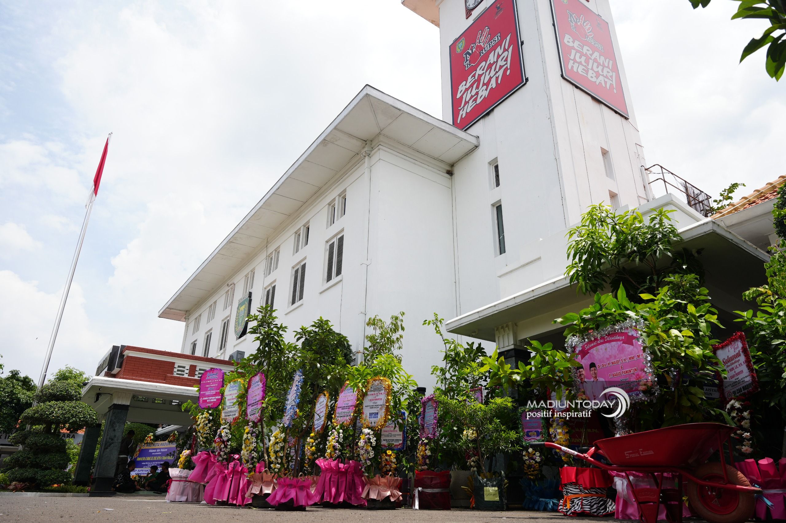 MADIUN - Halaman Balai Kota Madiun seketika berubah bak kebun buah aneka rupa. Bukan tanpa sebab, banyaknya bibit buah ini karena bentuk ungkapan selamat dari instansi vertikal, OPD, camat, lurah, pimpinan BUMD, perusahaan, dan media atas pelantikan Wali Kota Madiun Terpilih Dr. Maidi dan Wakil Wali Kota Madiun Terpilih F. Bagus Panuntun di Istana Merdeka, Kamis (20/2).