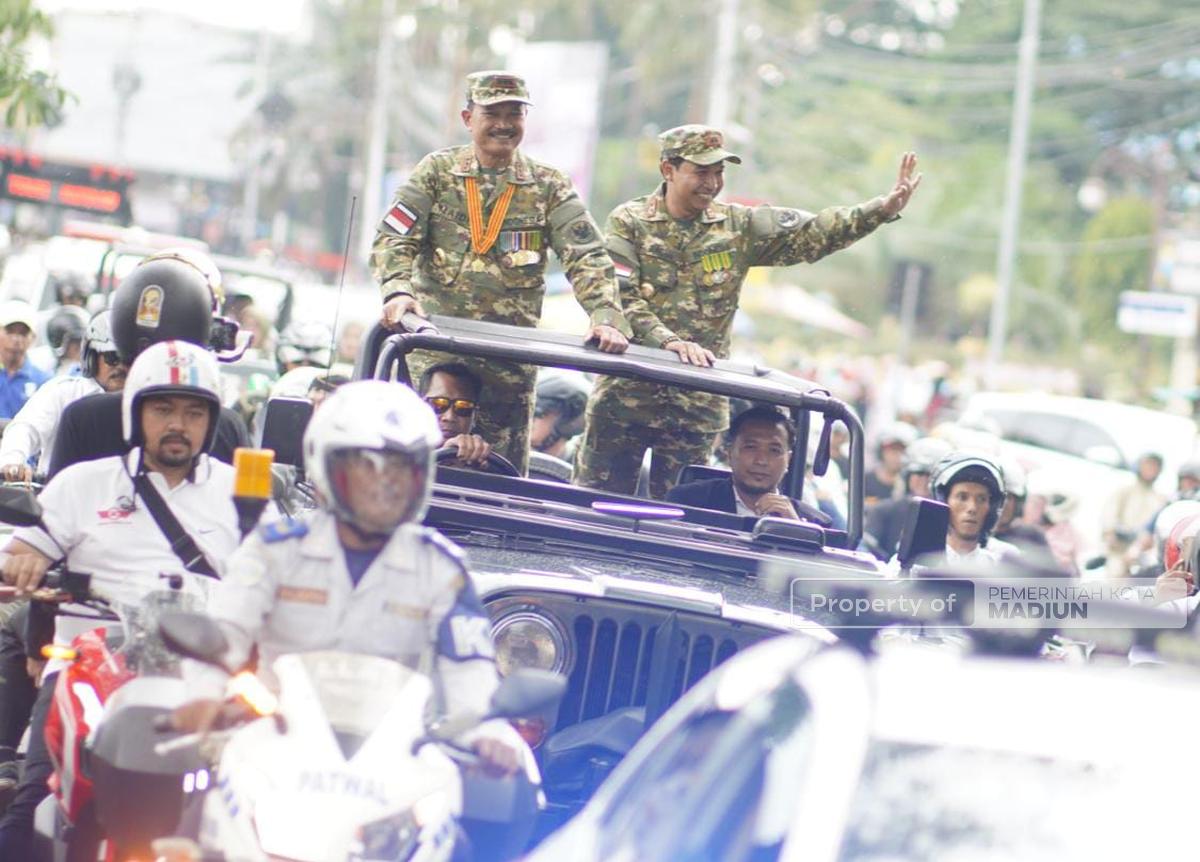 MADIUN – Wali Kota Madiun Dr. Maidi dan Wakil Wali Kota Madiun F Bagus Panuntun tiba di Kota Pendekar, Jumat (28/2). Keduanya baru saja tiba menjalani retret di Magelang. Khusus Wali Kota Dr. Maidi, ini merupakan kedatangan pertama sejak dilantik Presiden Prabowo 20 Februari lalu. Tak heran, kedatangan bapak perubahan di Kota Madiun itu disambut meriah warga masyarakat.