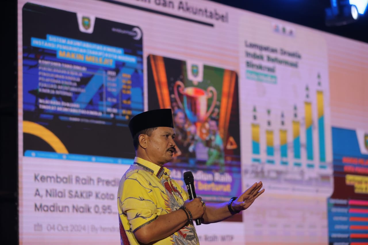 MADIUN – Kemajuan daerah memang butuh peran serta semua pihak. Tak terkecuali dari para pengusaha. Karenanya, Wali Kota Madiun Dr. Maidi menyampaikan terima kasih kepada para pengusaha top yang telah berkontribusi besar di Kota Pendekar. Hal itu disampaikan orang nomor satu di Kota Madiun dalam Customer Gathering Samsung Maju Hardware yang berlangsung di Bima Ballroom Aston Madiun, Jumat (7/3).