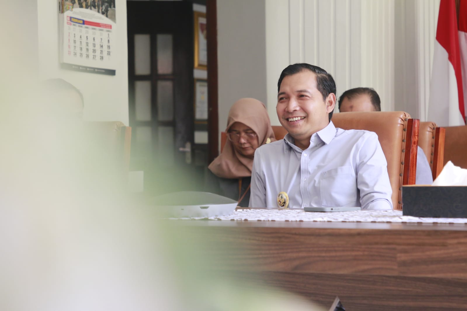 MADIUN – Wakil Wali Kota Madiun, F. Bagus Panuntun, mengikuti zoom meeting terkait rilis dan sosialisasi Indeks Daya Saing Daerah (IDSD) 2024 di Pendopo Balaikota, Selasa (11/3).