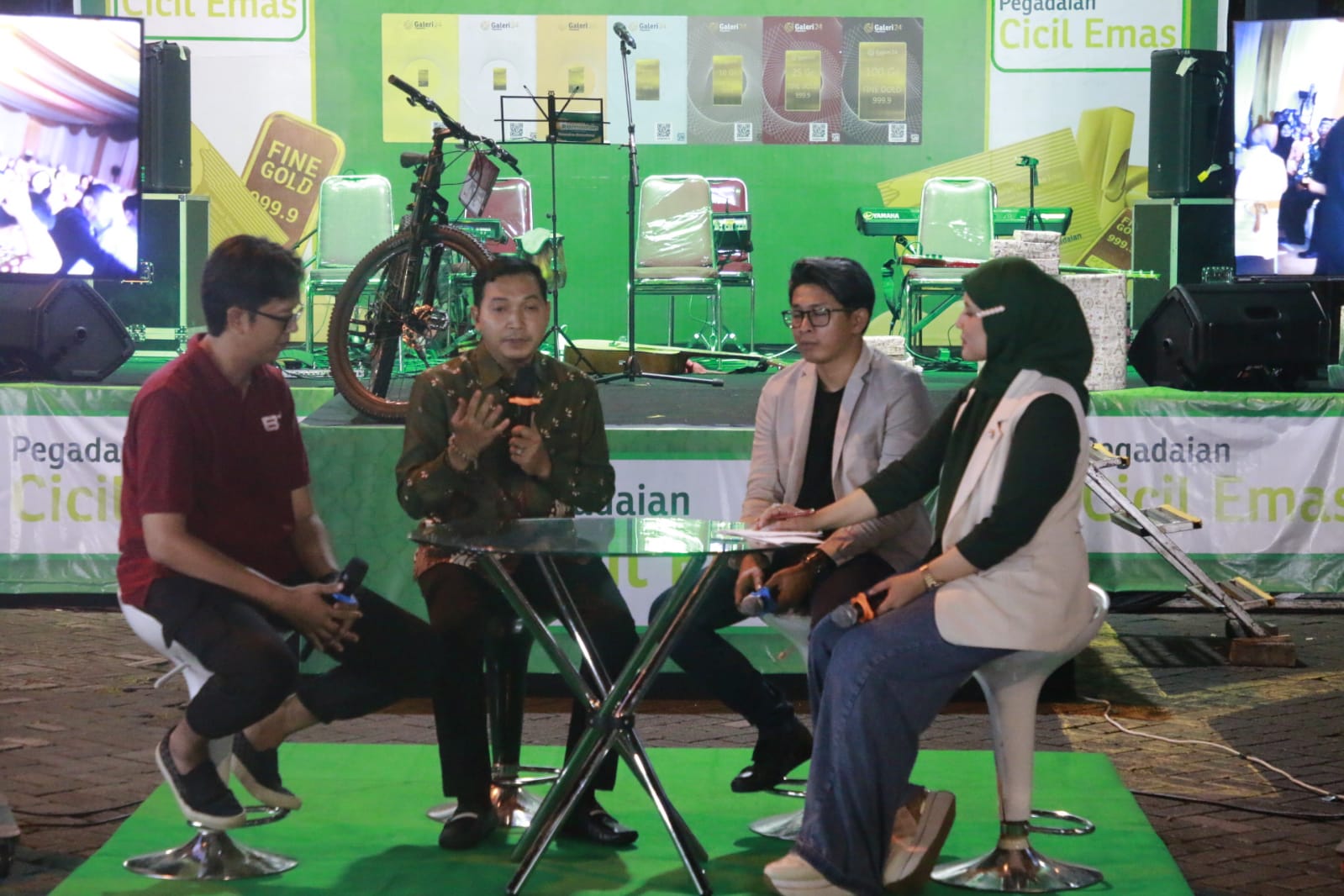 MADIUN – Kota Madiun dulu disingkiri sekarang disinggahi. Kota yang kini ramai dikunjungi. Hal ini tentu menjadi peluang sekaligus tantangan tersendiri. Karenanya, Wakil Wali Kota Madiun F Bagus Panuntun mengajak para pemuda untuk bisa menangkap peluang tersebut. Hal itu disampaikan wawali bersamaan Sharing Session Industri Event Live Music, Jumat (14/3). Event Bazar Pegadaian itu berlangsung di Halaman Parkir Timur Suncity Madiun.