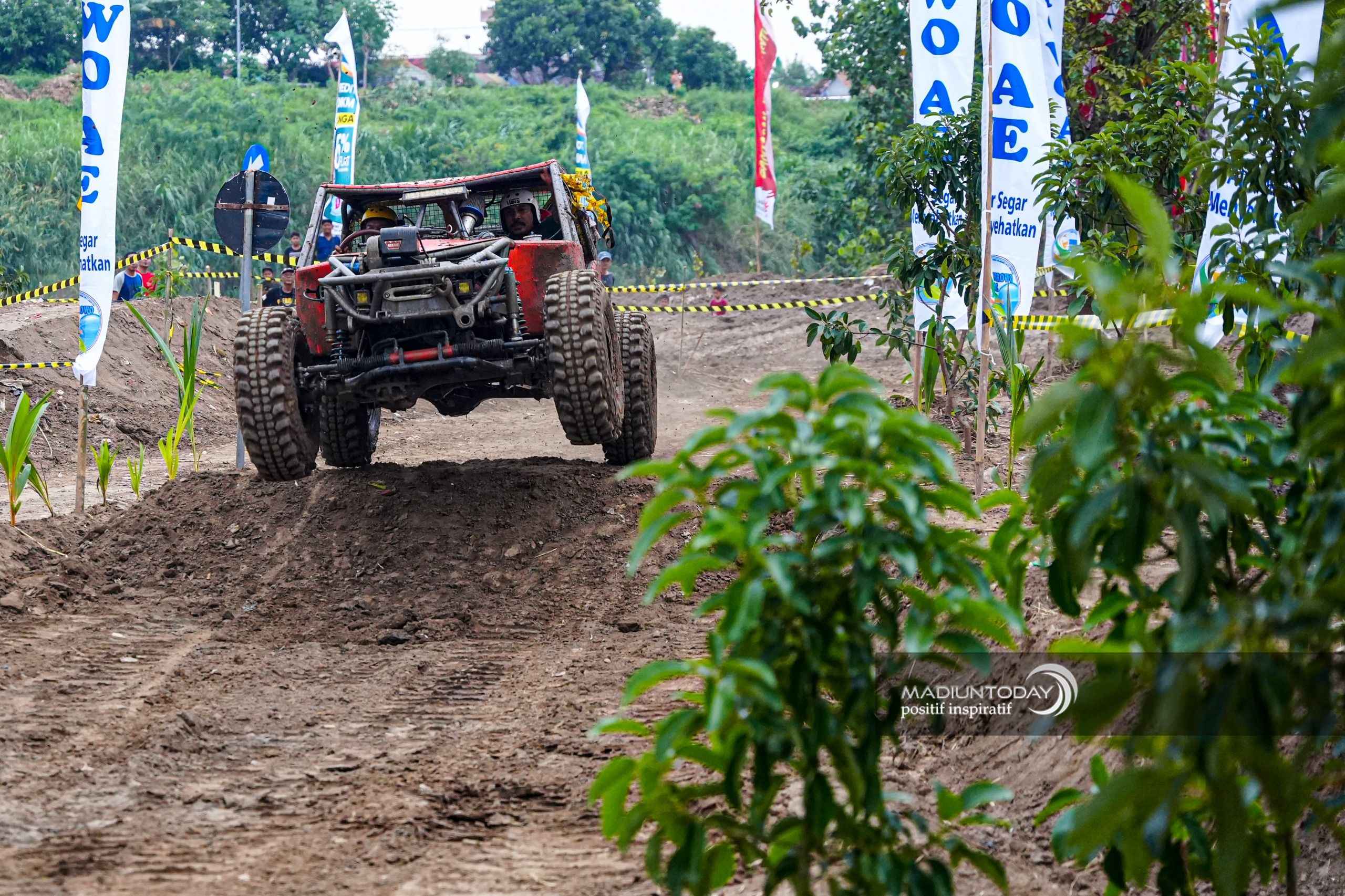 Wali Kota Madiun Dr. Maidi juga terlihat turut menjajal olahraga ekstrem ini. Para penonton bersorak menyaksikan mobil-mobil offroad menerjang genangan lumpur dan tanjakan terjal. Berani uji nyali disini? (Rams/madiuntoday)