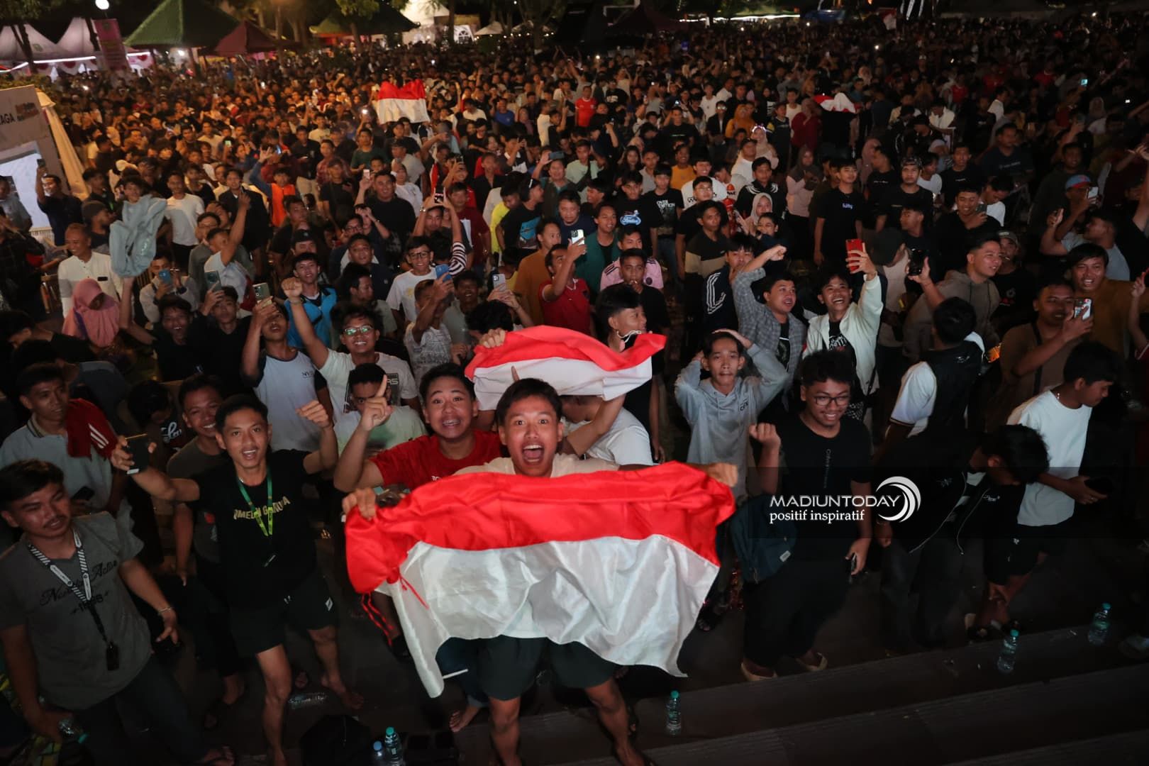 Perjuangan Timnas Indonesia di ajang kualifikasi Piala Dunia belum habis. Asa itu kembali mengemuka setelah Jay Idzes dkk berhasil memetik kemenangan saat menjamu Bahrain di Stadion GBK, Selasa (25/3) malam. Masyarakat Kota Madiun juga tak mau ketinggalan dalam memberikan dukungan. Hal itu terlihat saat nobar yang digelar Pemerintah Kota Madiun di Taman Lalu Lintas Bantaran Madiun. Antusias masyarakat luar biasa dari awal laga. Puncaknya, saat Ole Romeny berhasil melesahkan goal di menit 24. Kemenangan ini seakan menjadi pembalasan sempurna Timnas Garuda atas Bahrain. Seperti diketahui, Rizki Ridho dkk seakan dicurangi karena masalah tambahan waktu yang diberikan wasit pada pertemuan pertama di kandang Bahrain pada Oktober 2024 lalu. (ws hendro/agi/madiuntoday)