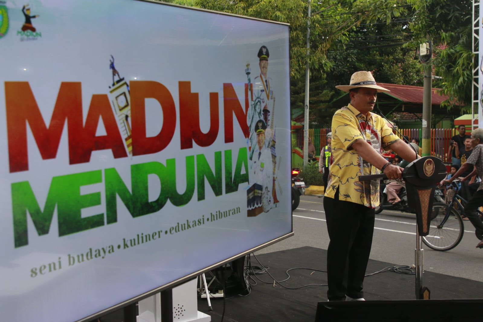 MADIUN – Kota Madiun semakin memperkuat identitasnya sebagai Kota Pecel dengan diresmikannya Sentra Pecel Madiun. Sentra kuliner yang terletak di Jalan Cokroaminoto ini resmi dibuka pada Sabtu (29/3) oleh Wali Kota Madiun Dr. Maidi dan Wakil Wali Kota Madiun F. Bagus Panuntun beserta jajaran Organisasi Perangkat Daerah (OPD).