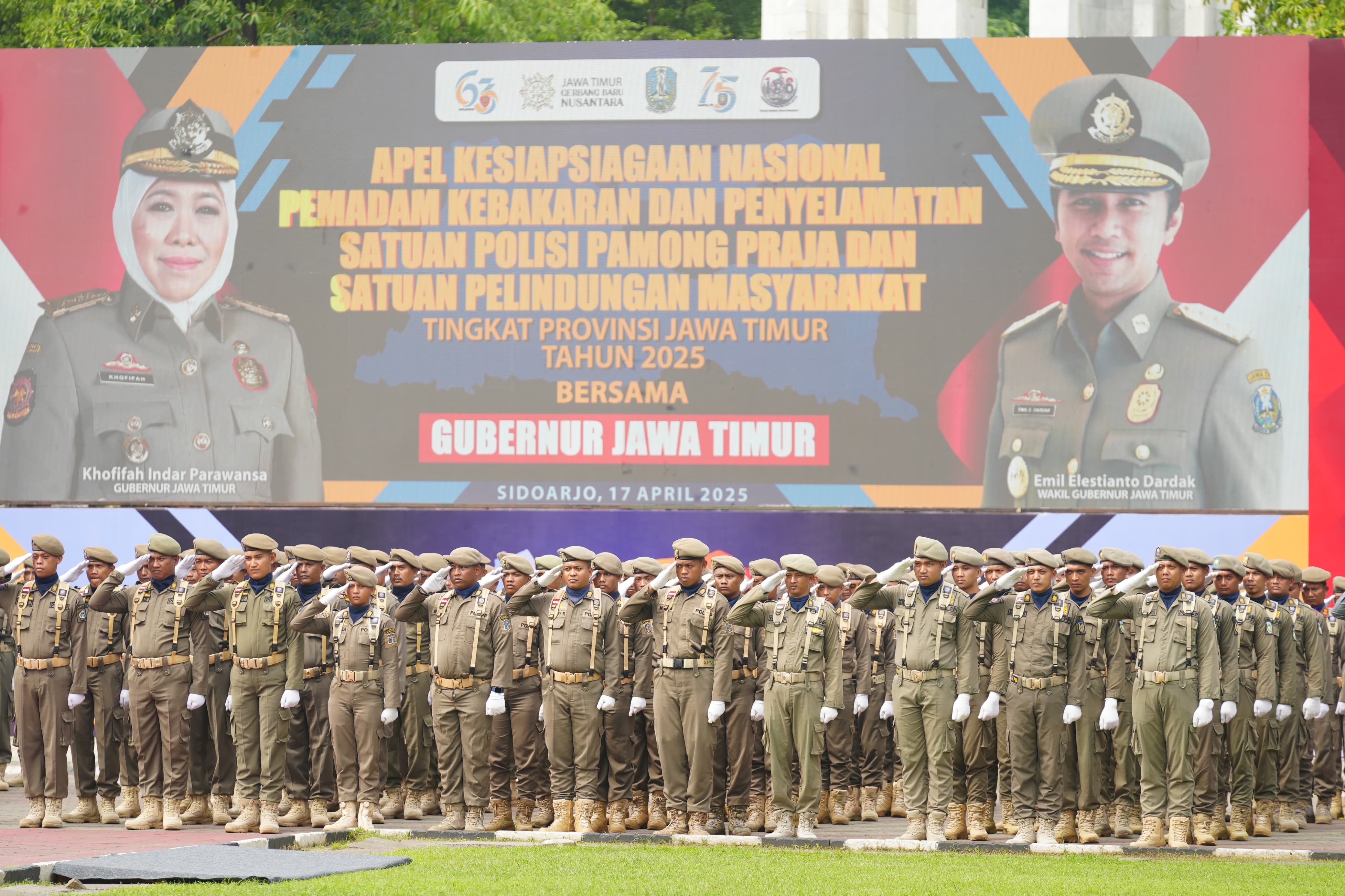 Hal tersebut sebagaimana disampaikan oleh Gubernur Khofifah saat memimpin Apel Kesiapsiagaan Nasional Pemadam Kebakaran dan Penyelamatan, Satuan Polisi Pamong Praja, serta Satuan Perlindungan Masyarakat. Kegiatan tersebut berlangsung di Alun-alun Sidoarjo, Kamis (17/4).