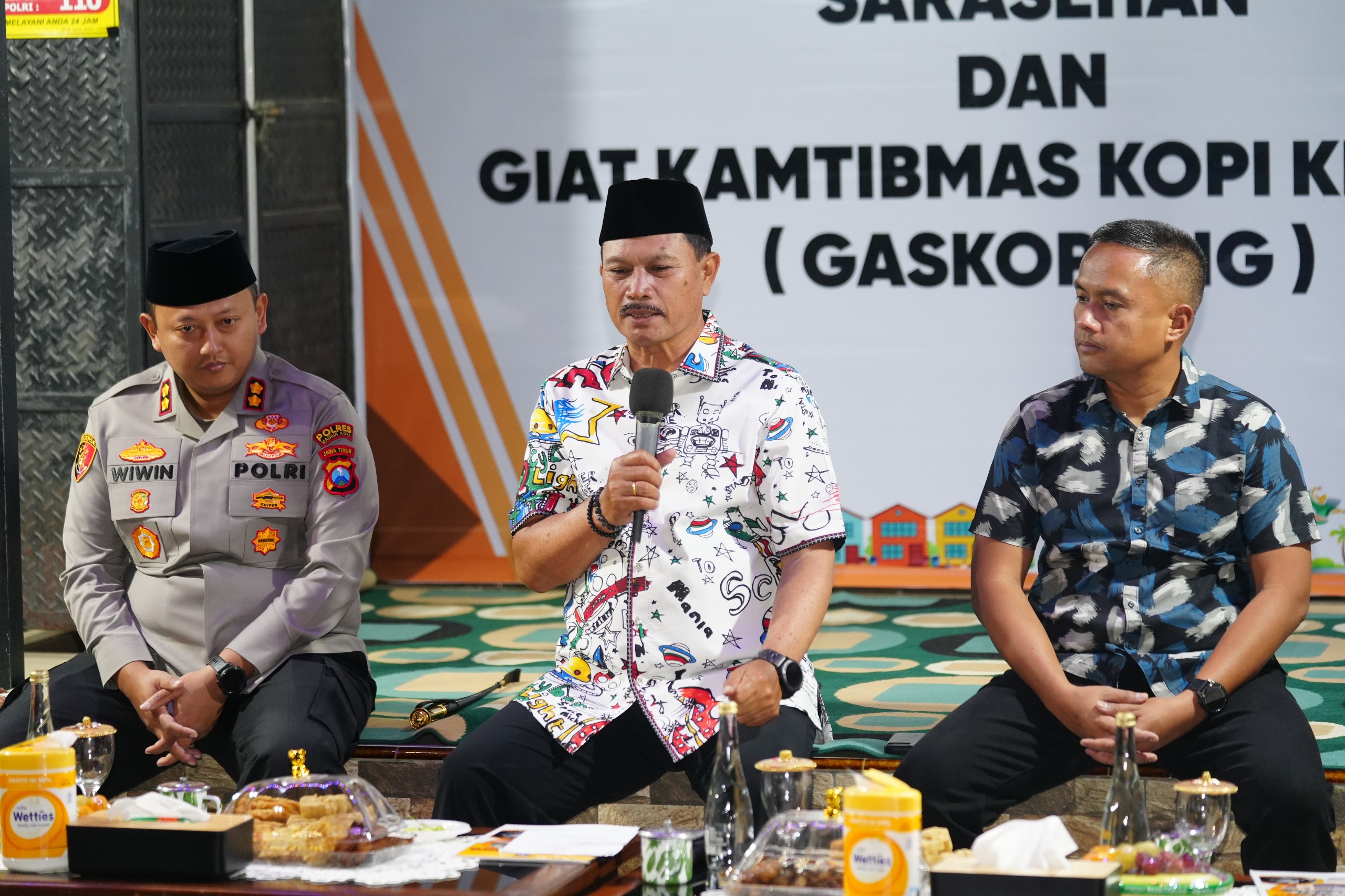MADIUN – Ada yang berbeda dalam giat Kantor Lapangan Wali Kota Madiun di Taman Hijau Demangan (THD), Rabu (23/4) malam. Pasalnya, inovasi layanan yang mengemuka bukan hanya dari Organisasi Perangkat Daerah (OPD) Pemerintah Kota Madiun. Namun, layanan juga datang dari Forum Koordinasi Pimpinan Kecamatan (Forkopimca) Taman dengan inovasi Giat Kamtibmas Kopi Keliling (Gas Kopling). Acara sarasehan sambil ngopi bersama masyarakat tersebut pun mendapatkan apresiasi Wali Kota Madiun Dr. Maidi.