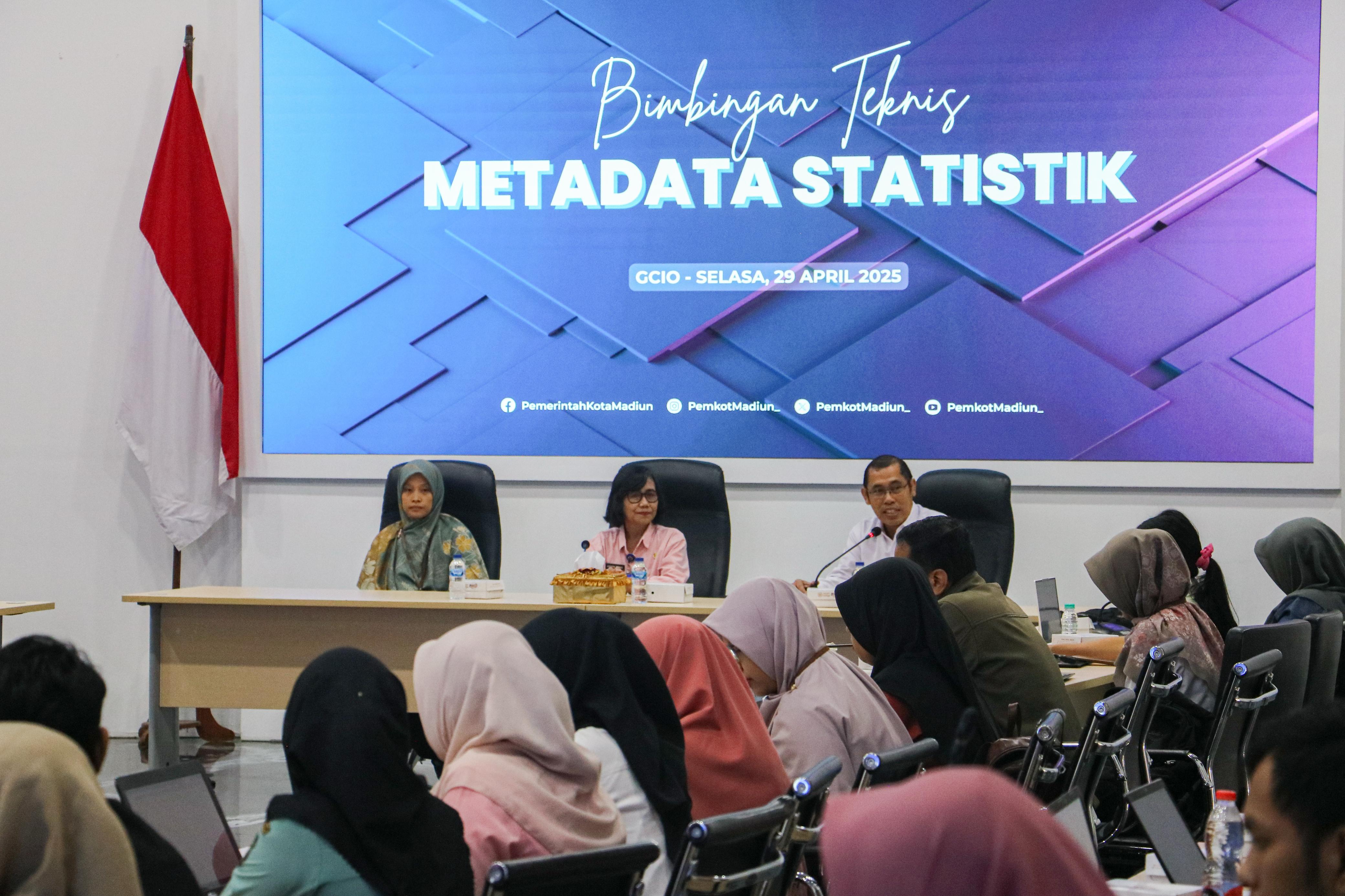 MADIUN – Data memegang peranan penting dalam era digitalisasi saat ini. Karenanya, penyajian data juga kudu valid, akurat, dan update. Dinas Komunikasi dan Informatika (Diskominfo) Kota Madiun berkolaborasi dengan Badan Pusat Statistik (BPS) Kota Madiun guna menggelar Bimbingan Teknis (Bimtek) Metadata Statistik bagi aparatur pemerintah. Bimtek berlangsung di gedung Government Chief Information Officer (GCIO) Kota Madiun, Selasa (29/4). Kegiatan bertujuan meningkatkan pemahaman aparatur pemerintah tentang pentingnya metadata dalam penyelenggaraan statistik sektoral. Harapannya, penyajian data kepada masyarakat bisa terus ditingkatkan.