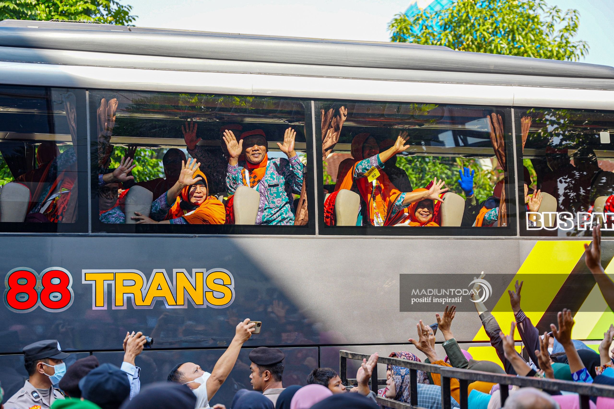 Adapun tahun ini pemberangkatan CJH tidak dilakukan di Wisma Haji. Namun, dialihkan ke Masjid Agung Baitul Hakim, Alun-alun Barat, Kota Madiun.