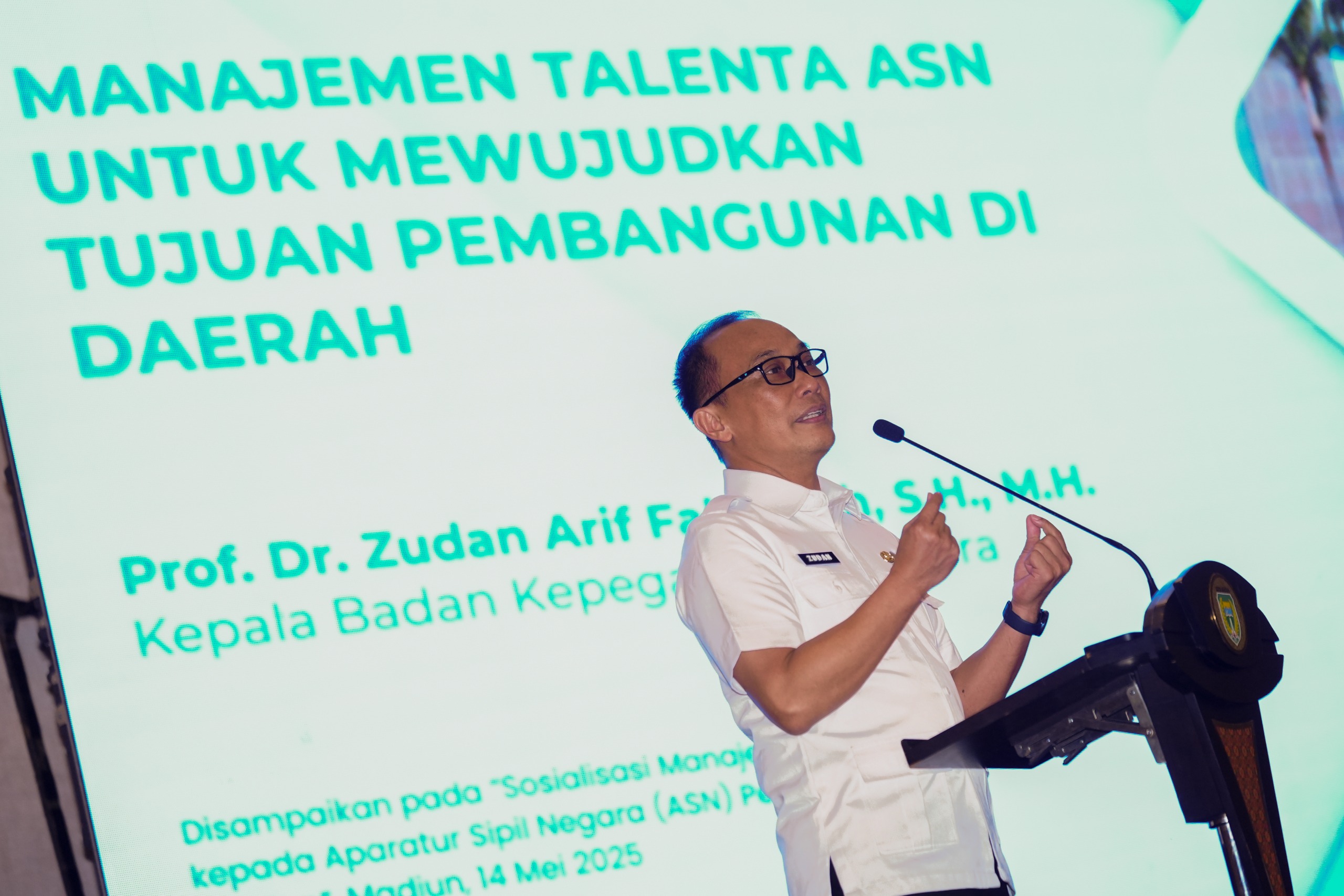 Zudan menekankan bahwa manajemen talenta ASN harus disesuaikan dengan potensi masing-masing daerah sebagai instrumen strategis untuk mendukung visi misi nasional. Menurutnya, tugas utama ASN adalah menghadirkan kebahagiaan masyarakat, yang tercermin langsung dalam kualitas layanan publik.